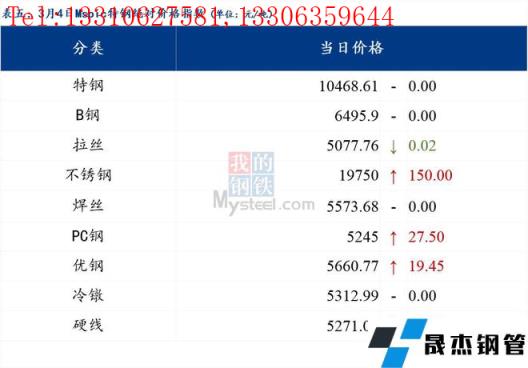 3月4日普鋼絕對價格指數(shù)變化:綜合指數(shù)5226.82,上漲0.36;螺紋鋼指數(shù)4954.04,下跌3.31;線材指數(shù)5293.86,下跌0.84;熱軋板卷指數(shù)5160.14,下跌13.7;冷軋板卷指數(shù)5589.59,上漲19.12;中厚板指數(shù)5199.28,上漲12.44。