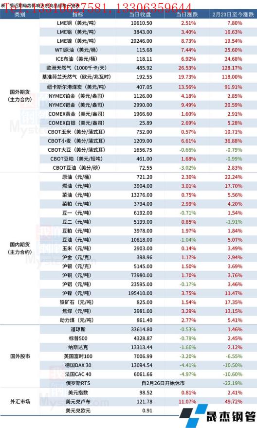 免責聲明:本網站(山東聊城晟杰無縫鋼管廠m.yztongfa.com)刊載的“2022年03月07日早讀:周末唐山鋼坯累漲60元,國際油價開盤升破130美元”等均源于網絡,版權歸原作者所有,且僅代表原作者觀點,本文所載信息僅供參考。轉載僅為學習與交流之目的,如無意中侵犯您的合法權益,請及時聯系刪除。本網站刊登此篇文章并不意味著本站贊同其觀點或證實其內容的真實性,我們不對其科學性、嚴肅性等作任何形式的保證。如果侵犯了您的版權,請盡快聯系我們予以撤銷,謝謝合作!