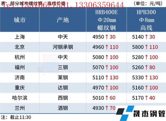 ◎杭州:7日早盤杭州優特鋼市場價格漲20-30。現45#Φ30以上主流價格杭5400淮5420南5390,元立(直發)5400中天5390東方5330,40Cr杭5610淮5660;齒輪萊鋼5780,鉻鉬建龍5990淮鋼6060。(單位:元/噸)