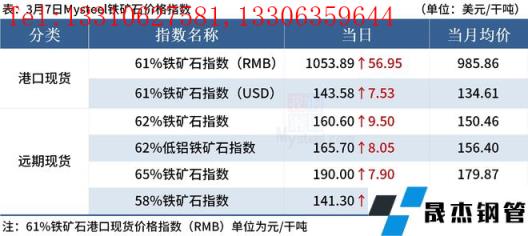 ◎3月7日,全國主港鐵礦石成交116.10萬噸,環(huán)比增87.3%;237家主流貿(mào)易商建材成交25.26萬噸,環(huán)比增52%。