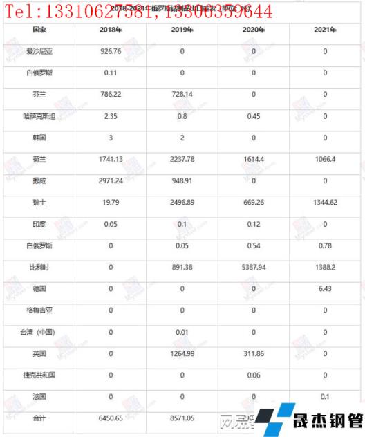 俄羅斯鈷對外貿易流向