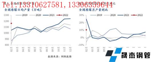 1-2月原煤生產較快增長。2022年1-2月份,全國生產原煤6.9億噸,同比增長10.3%,增速比上年12月份加快3.1個百分點,日均產量1164萬噸。1月,部分煤礦完成年度生產目標,煤礦生產有所回落,但電廠庫存偏低,大中型煤礦保供任務加重,煤炭產量仍保持在1100萬噸/日以上。2月春節、冬奧會影響,煤礦提產較慢,不過在冷空氣影響下,電力需求增加,部分電廠庫存處于偏低水平,煤炭需求啟動加快,多部門加強統籌調度,積極推動主要產煤省區和重點煤炭企業在確保安全的前提下增加煤炭產量。據調度數據,2月20日,全國煤炭日產量1218萬噸,已恢復至去年四季度日均產量水平。