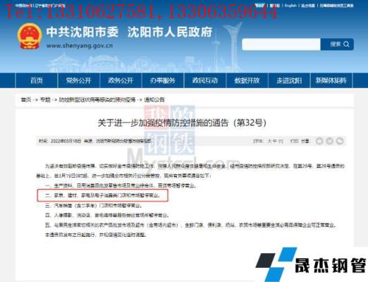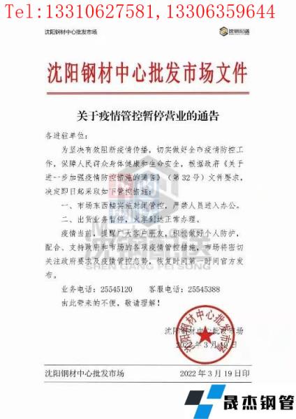 免責聲明:本網站(山東聊城晟杰無縫鋼管廠m.yztongfa.com)刊載的“快訊:沈陽加強疫情管控 所有鋼材_無縫鋼管市場或停止辦公及出庫”等均源于網絡,版權歸原作者所有,且僅代表原作者觀點,本文所載信息僅供參考。轉載僅為學習與交流之目的,如無意中侵犯您的合法權益,請及時聯系刪除。本網站刊登此篇文章并不意味著本站贊同其觀點或證實其內容的真實性,我們不對其科學性、嚴肅性等作任何形式的保證。如果侵犯了您的版權,請盡快聯系我們予以撤銷,謝謝合作!