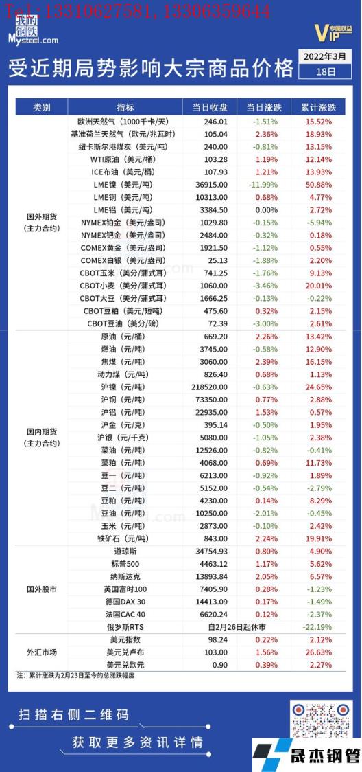 免責聲明:本網站(山東聊城晟杰無縫鋼管廠m.yztongfa.com)刊載的“受近期局勢影響大宗商品價格一覽表(3月18日)”等均源于網絡,版權歸原作者所有,且僅代表原作者觀點,本文所載信息僅供參考。轉載僅為學習與交流之目的,如無意中侵犯您的合法權益,請及時聯系刪除。本網站刊登此篇文章并不意味著本站贊同其觀點或證實其內容的真實性,我們不對其科學性、嚴肅性等作任何形式的保證。如果侵犯了您的版權,請盡快聯系我們予以撤銷,謝謝合作!