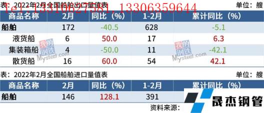 免責聲明:本網站(山東聊城晟杰無縫鋼管廠m.yztongfa.com)刊載的“海關總署:2月中國船舶進口146艘,同比增長128.1%”等均源于網絡,版權歸原作者所有,且僅代表原作者觀點,本文所載信息僅供參考。轉載僅為學習與交流之目的,如無意中侵犯您的合法權益,請及時聯系刪除。本網站刊登此篇文章并不意味著本站贊同其觀點或證實其內容的真實性,我們不對其科學性、嚴肅性等作任何形式的保證。如果侵犯了您的版權,請盡快聯系我們予以撤銷,謝謝合作!