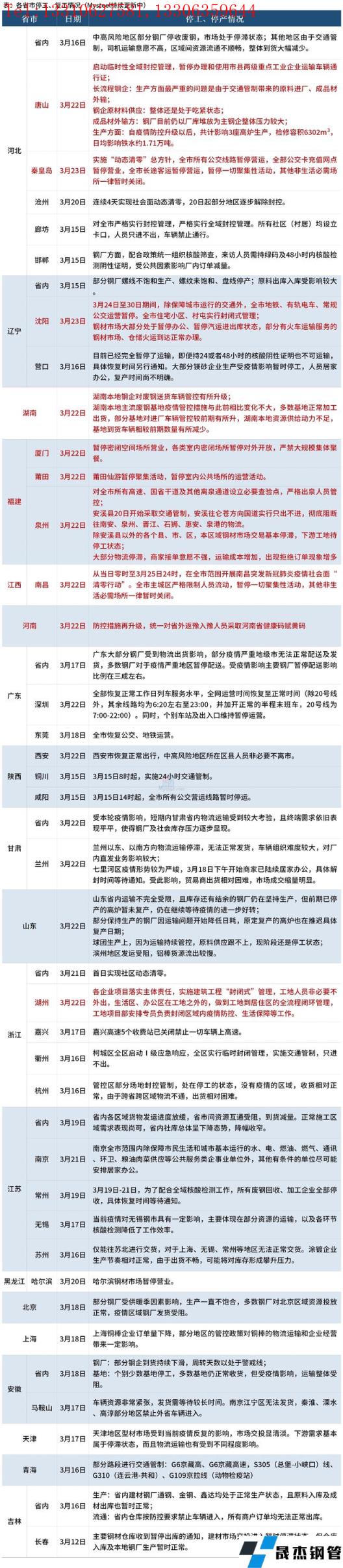 其中,3月22日,唐山市啟動臨時性全域封控管理,暫停辦理和使用市縣兩級重點工業(yè)企業(yè)運輸車輛通行證。沈陽于3月24日至30日期間,除保障城市運行的交通外,全市地鐵、有軌電車、常規(guī)公交運營暫停,全市住宅小區(qū)、村屯實行封閉式管理;厚壁無縫鋼管市場大部分處于暫停辦公、暫停汽運進出庫狀態(tài),部分有火車運輸服務的厚壁無縫鋼管市場、倉儲火運到達正常辦理。3月20日福建泉州安溪縣開始采取交通管制,除安溪縣以外的各個縣、市、區(qū),本區(qū)域厚壁無縫鋼管市場交易基本停滯,下游工地待停工狀態(tài)。具體情況如下:
