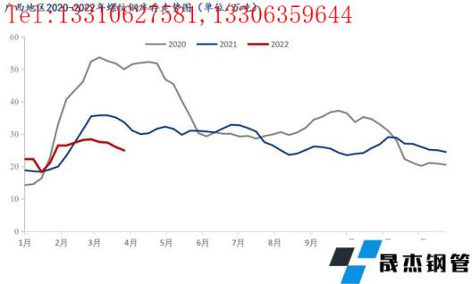 圖表二:廣西地區螺紋鋼庫存走勢圖