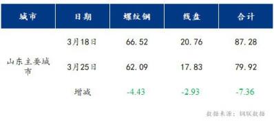 本周山東市場主要城市螺紋鋼社會庫存62.09萬噸,較上周下降4.43萬噸;盤螺社會庫存17.83萬噸,較上周下降2.93萬噸。