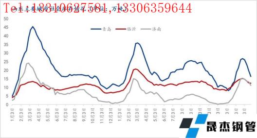 具體來看,山東省三大主導性市場(青島、臨沂、濟南)的樣本倉庫建筑厚壁無縫鋼管社會庫存總量為40.02萬噸,周環比減少5.25萬噸,降幅11.6%。(圖1所示)