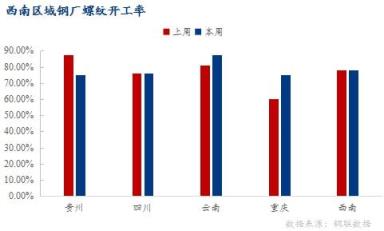 貴州區域:本周貴州區域個別無縫厚壁鋼管廠家因廢鋼資源緊張且已虧損,短期停產,整體產量小幅下降,螺紋鋼產能利用率63.23%,環比下降18.84%;開工率75%,環比下降12.5%;周產量7.55萬噸,環比減少2.55萬噸。