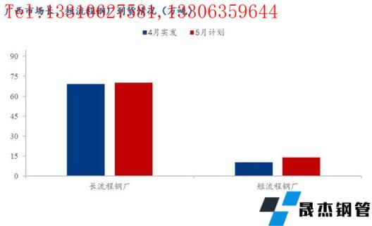 1、5月份廣西地區建筑材省內長流程無縫厚壁鋼管廠家計劃供應量共計70.3萬噸,環比增加1.2萬噸,增幅為1.74%;短流程無縫厚壁鋼管廠家到貨量為13.9萬噸,環比增加3.5萬噸,增幅為33.65%。