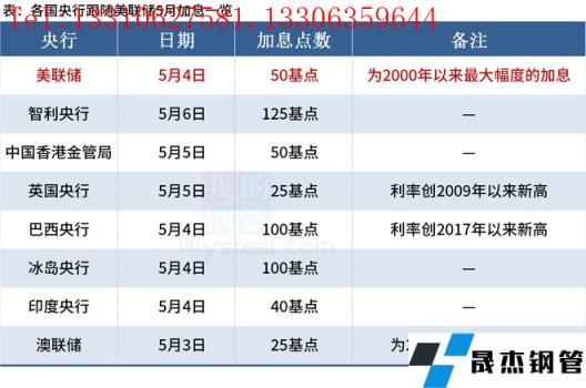 據(jù)不完全統(tǒng)計(jì),截至發(fā)稿,5月已有6家央行跟隨美聯(lián)儲(chǔ)腳步加息,1家央行先于美聯(lián)儲(chǔ)一天加息。具體如下: