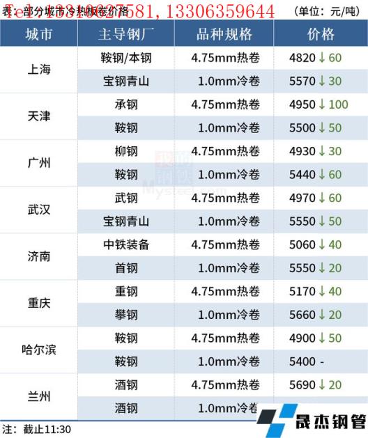 ◎天津:9日早盤冷軋市場價格下調50元/噸,1.0天鐵5510元/噸;首鋼5500元/噸,唐鋼5470元/噸,市場成交差。(單位:元/噸)