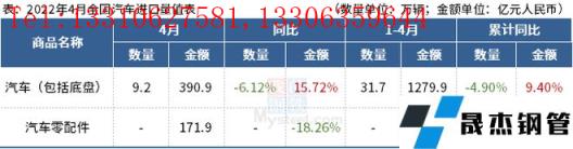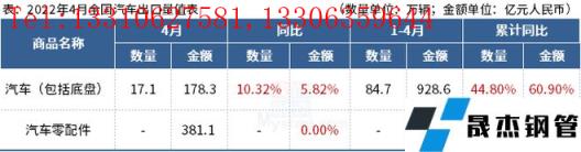 免責聲明:本網站(山東聊城晟杰無縫鋼管廠m.yztongfa.com)刊載的“海關總署:4月中國出口汽車17.1萬輛,同比增長10.32%”等均源于網絡,版權歸原作者所有,且僅代表原作者觀點,本文所載信息僅供參考。轉載僅為學習與交流之目的,如無意中侵犯您的合法權益,請及時聯系刪除。本網站刊登此篇文章并不意味著本站贊同其觀點或證實其內容的真實性,我們不對其科學性、嚴肅性等作任何形式的保證。如果侵犯了您的版權,請盡快聯系我們予以撤銷,謝謝合作!