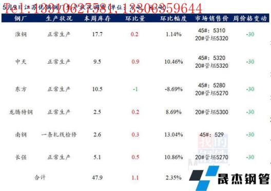 江蘇優(yōu)特?zé)o縫厚壁鋼管廠家棒材總庫存47.9萬噸,較上周增加1.1萬噸,環(huán)比增2.35%,較去年同期上升10.48萬噸,同比增28.01%。
