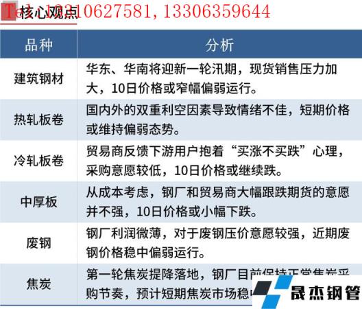 建筑厚壁無縫鋼管:5月9日,全國31個(gè)主要城市20mm三級(jí)抗震螺紋鋼均價(jià)5022元/噸,較上個(gè)交易日下跌50元/噸。短期來看,近期市場(chǎng)心態(tài)偏悲觀,同時(shí)華東、華南即將迎來新一輪汛期,現(xiàn)貨銷售壓力加大。因此在缺乏有效強(qiáng)需求支撐下,預(yù)計(jì)10日建筑厚壁無縫鋼管價(jià)格或?qū)⒄踹\(yùn)行。