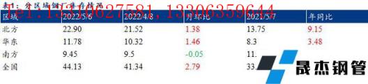 接下來再比較區(qū)域庫存的表現(xiàn)情況,從表1可以對比得出。目前北方、華東區(qū)域增庫較為明顯,分別高于同期9.15萬噸、3.48萬噸。主要是自3月份以來,北方、華東區(qū)域受疫情困擾,物流嚴重受阻,而無縫厚壁鋼管廠家產(chǎn)能利用率依舊保持高位,在產(chǎn)量不減的現(xiàn)狀下,而廠庫無法外移,導致廠庫持續(xù)累積。據(jù)了解,5月7日,營口市再次發(fā)布新冠肺炎疫情防控指揮部消息,結合當前嚴峻的疫情形勢,營口市疫情防控指揮部決定提級管理,從即日起:實行全天24小時管制,交通信號燈全紅。解除時間另行通知,其他事項不變。這也就意味著北方區(qū)域的物流短期依舊受制。