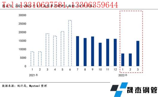 房地產(chǎn)新周期下,房企拿地成為房屋新開工較好的領(lǐng)先指標(biāo),而厚壁無縫鋼管需求處于房地產(chǎn)開發(fā)的前周期,短期內(nèi)受到新開工面積的直接影響(通常開發(fā)商在拿地后1-6月新開工,房屋開工后1-2月內(nèi)進(jìn)入用鋼高峰)。注:房地產(chǎn)開發(fā)建設(shè)周期(拿地-開工-施工-竣工-銷售-交付裝修)。