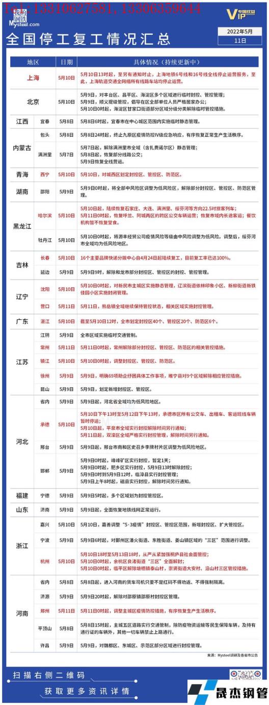 免責聲明:本網站(山東聊城晟杰無縫鋼管廠m.yztongfa.com)刊載的“疫情影響丨全國停工復工情況匯總(5月11日)”等均源于網絡,版權歸原作者所有,且僅代表原作者觀點,本文所載信息僅供參考。轉載僅為學習與交流之目的,如無意中侵犯您的合法權益,請及時聯系刪除。本網站刊登此篇文章并不意味著本站贊同其觀點或證實其內容的真實性,我們不對其科學性、嚴肅性等作任何形式的保證。如果侵犯了您的版權,請盡快聯系我們予以撤銷,謝謝合作!