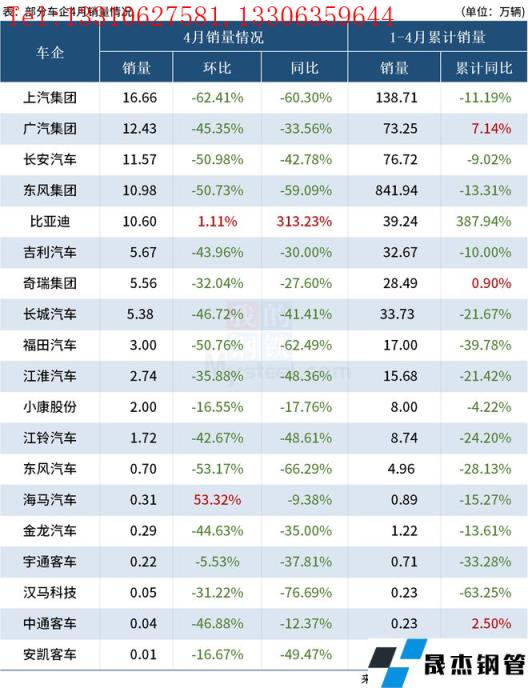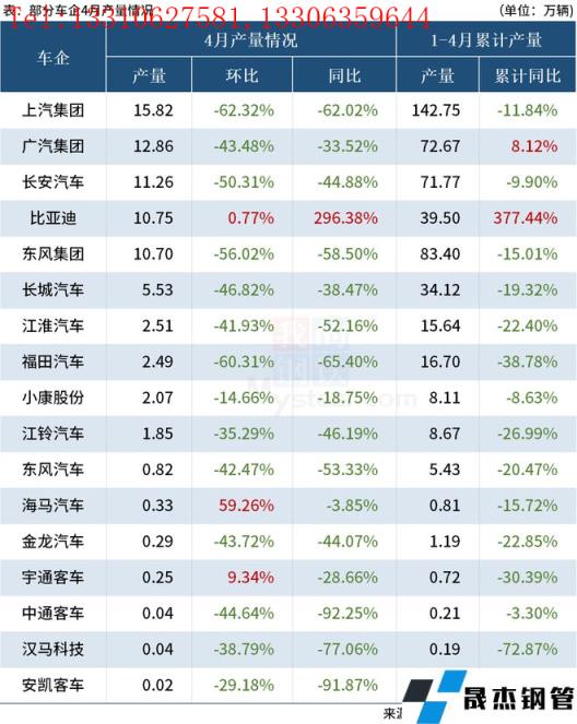 免責聲明:本網站(山東聊城晟杰無縫鋼管廠m.yztongfa.com)刊載的“4月19家車企銷量出爐,超九成同比大降”等均源于網絡,版權歸原作者所有,且僅代表原作者觀點,本文所載信息僅供參考。轉載僅為學習與交流之目的,如無意中侵犯您的合法權益,請及時聯系刪除。本網站刊登此篇文章并不意味著本站贊同其觀點或證實其內容的真實性,我們不對其科學性、嚴肅性等作任何形式的保證。如果侵犯了您的版權,請盡快聯系我們予以撤銷,謝謝合作!