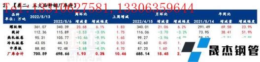 據(jù)統(tǒng)計(jì),建材方面,本周線盤庫存變動幅度較小,但螺紋增庫突出,增庫區(qū)域集中于華東、西南和華北,增庫省份集中于江蘇、山西和四川。增庫原因在于區(qū)域內(nèi)增產(chǎn)促使入庫資源量增加,但出貨節(jié)奏維穩(wěn),進(jìn)而使得庫存環(huán)比出現(xiàn)增量。另外,南方部分區(qū)域出現(xiàn)強(qiáng)降雨,疊加長三角和京津冀的防控舉措,促使貨運(yùn)物流受阻,以及現(xiàn)貨回降,散單采購情緒較差,廠發(fā)環(huán)比表現(xiàn)明顯趨弱,進(jìn)一步促使庫存壓力提升。熱卷方面,本周無縫厚壁鋼管廠家?guī)齑娲蠓陆?,主要降幅地區(qū)是東北、華北地區(qū),其中東北地區(qū)是因無縫厚壁鋼管廠家主要發(fā)運(yùn)地及東北主要發(fā)運(yùn)港口有受疫情影響發(fā)運(yùn)受限,無縫厚壁鋼管廠家主動降資源向廠外庫轉(zhuǎn)移降低廠庫壓力,華北地區(qū)則是加速廠庫前移,導(dǎo)致本周廠庫大幅下降。