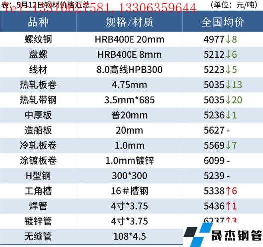 5月12日,國內厚壁無縫鋼管市場價格震蕩偏弱,唐山普方坯出廠價漲20報4660元/噸。今日黑色期貨市場全線下跌,加上南方、華東強降雨影響,市場心態轉差,成交量明顯收縮。