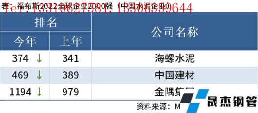 免責聲明:本網站(山東聊城晟杰無縫鋼管廠m.yztongfa.com)刊載的“中國3家水泥企業上榜福布斯2022全球企業2000強”等均源于網絡,版權歸原作者所有,且僅代表原作者觀點,本文所載信息僅供參考。轉載僅為學習與交流之目的,如無意中侵犯您的合法權益,請及時聯系刪除。本網站刊登此篇文章并不意味著本站贊同其觀點或證實其內容的真實性,我們不對其科學性、嚴肅性等作任何形式的保證。如果侵犯了您的版權,請盡快聯系我們予以撤銷,謝謝合作!