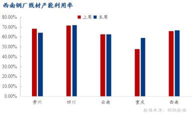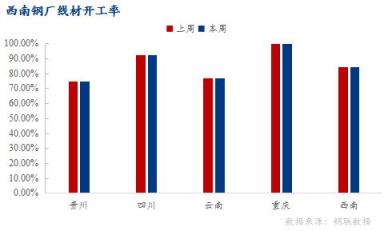 四川區(qū)域:部分產(chǎn)能置換無(wú)縫厚壁鋼管廠家產(chǎn)量小幅提升,線材產(chǎn)能利用率72.06%,環(huán)比上升0.55%;開(kāi)工率92.31%,環(huán)比持平;周產(chǎn)量13.05萬(wàn)噸,環(huán)比增加0.1萬(wàn)噸。