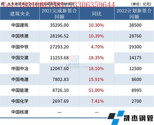 免責聲明:本網站(山東聊城晟杰無縫鋼管廠m.yztongfa.com)刊載的“9大建筑央企預計2022年營收超6.6萬億元”等均源于網絡,版權歸原作者所有,且僅代表原作者觀點,本文所載信息僅供參考。轉載僅為學習與交流之目的,如無意中侵犯您的合法權益,請及時聯系刪除。本網站刊登此篇文章并不意味著本站贊同其觀點或證實其內容的真實性,我們不對其科學性、嚴肅性等作任何形式的保證。如果侵犯了您的版權,請盡快聯系我們予以撤銷,謝謝合作!