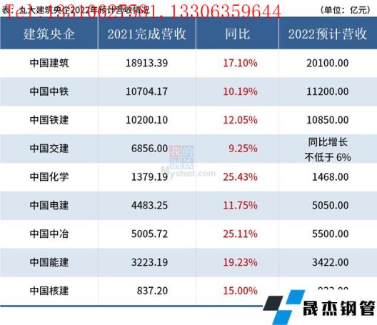 免責聲明:本網站(山東聊城晟杰無縫鋼管廠m.yztongfa.com)刊載的“九大建筑央企2022年計劃新簽合同額破14萬億”等均源于網絡,版權歸原作者所有,且僅代表原作者觀點,本文所載信息僅供參考。轉載僅為學習與交流之目的,如無意中侵犯您的合法權益,請及時聯系刪除。本網站刊登此篇文章并不意味著本站贊同其觀點或證實其內容的真實性,我們不對其科學性、嚴肅性等作任何形式的保證。如果侵犯了您的版權,請盡快聯系我們予以撤銷,謝謝合作!