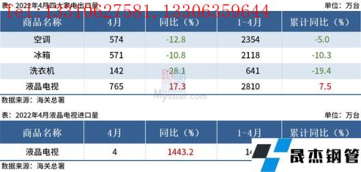 免責聲明:本網站(山東聊城晟杰無縫鋼管廠m.yztongfa.com)刊載的“海關總署:4月中國四大家電出口量出爐,洗衣機同比降28.1%”等均源于網絡,版權歸原作者所有,且僅代表原作者觀點,本文所載信息僅供參考。轉載僅為學習與交流之目的,如無意中侵犯您的合法權益,請及時聯系刪除。本網站刊登此篇文章并不意味著本站贊同其觀點或證實其內容的真實性,我們不對其科學性、嚴肅性等作任何形式的保證。如果侵犯了您的版權,請盡快聯系我們予以撤銷,謝謝合作!