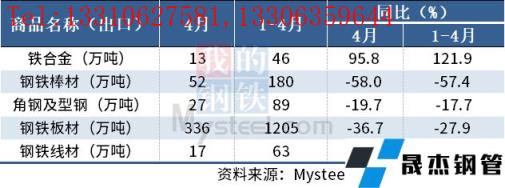 免責聲明:本網站(山東聊城晟杰無縫鋼管廠m.yztongfa.com)刊載的“海關總署:4月中國出口板材336萬噸,同比降36.7%”等均源于網絡,版權歸原作者所有,且僅代表原作者觀點,本文所載信息僅供參考。轉載僅為學習與交流之目的,如無意中侵犯您的合法權益,請及時聯系刪除。本網站刊登此篇文章并不意味著本站贊同其觀點或證實其內容的真實性,我們不對其科學性、嚴肅性等作任何形式的保證。如果侵犯了您的版權,請盡快聯系我們予以撤銷,謝謝合作!