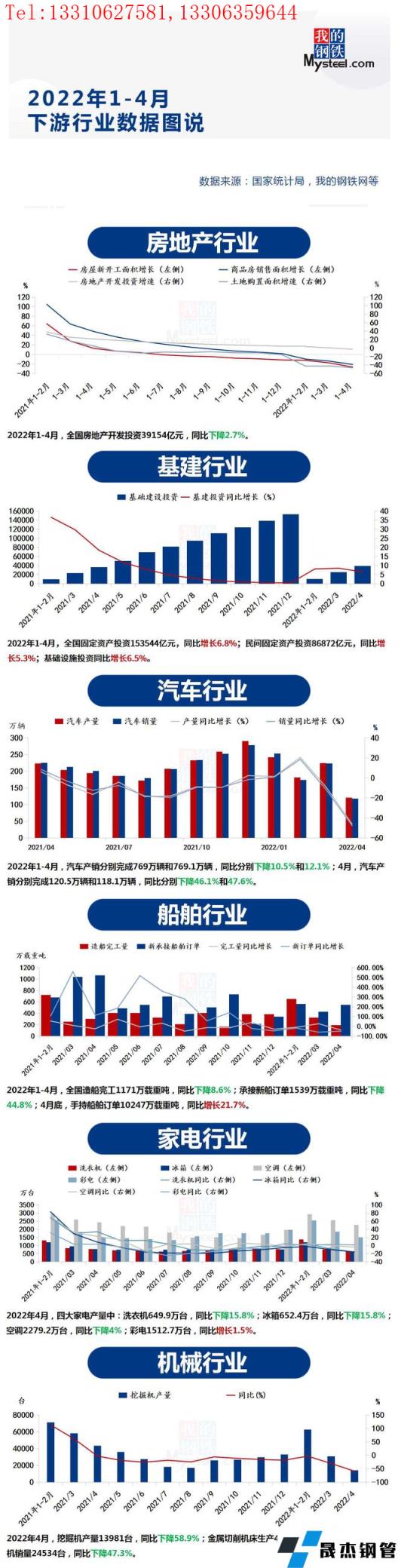 匯總了2022年1-4月部分下游用鋼行業(yè)的運行情況。