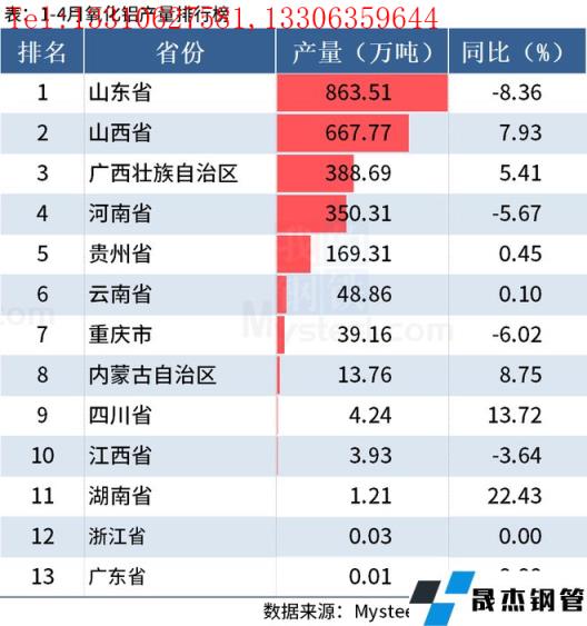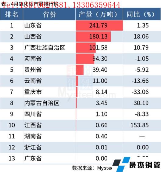免責聲明:本網站(山東聊城晟杰無縫鋼管廠m.yztongfa.com)刊載的“統計局:前4月全國分省市鋁材、氧化鋁產量出爐”等均源于網絡,版權歸原作者所有,且僅代表原作者觀點,本文所載信息僅供參考。轉載僅為學習與交流之目的,如無意中侵犯您的合法權益,請及時聯系刪除。本網站刊登此篇文章并不意味著本站贊同其觀點或證實其內容的真實性,我們不對其科學性、嚴肅性等作任何形式的保證。如果侵犯了您的版權,請盡快聯系我們予以撤銷,謝謝合作!