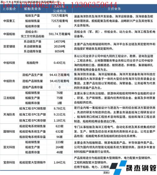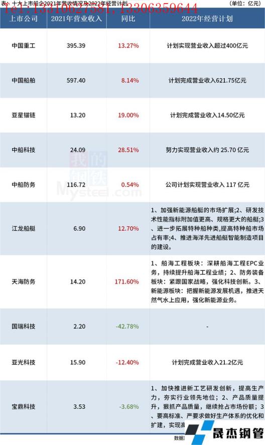 10大上市船企2022年經營計劃以及2021年船舶類業務完成具體情況如下: