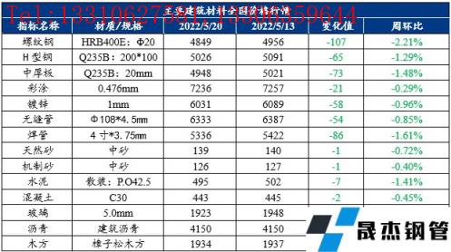 免責聲明:本網站(山東聊城晟杰無縫鋼管廠m.yztongfa.com)刊載的“建筑原材料周報(5.16-5.20)”等均源于網絡,版權歸原作者所有,且僅代表原作者觀點,本文所載信息僅供參考。轉載僅為學習與交流之目的,如無意中侵犯您的合法權益,請及時聯系刪除。本網站刊登此篇文章并不意味著本站贊同其觀點或證實其內容的真實性,我們不對其科學性、嚴肅性等作任何形式的保證。如果侵犯了您的版權,請盡快聯系我們予以撤銷,謝謝合作!