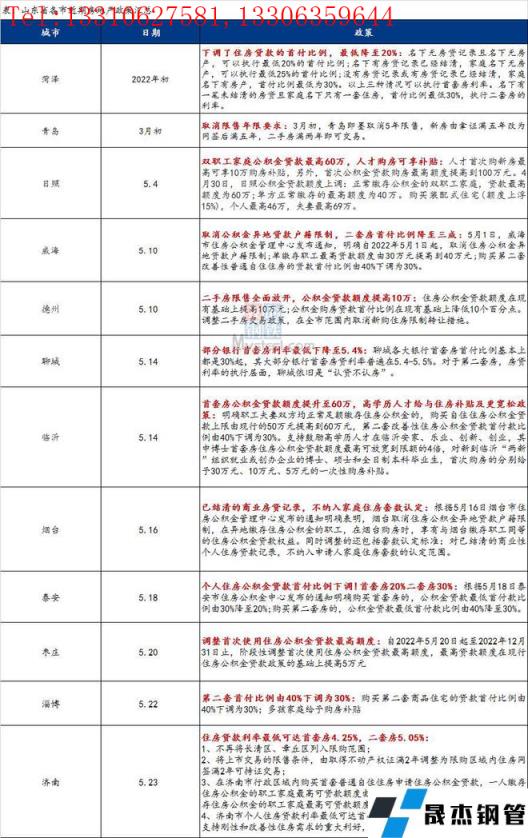 免責聲明:本網站(山東聊城晟杰無縫鋼管廠m.yztongfa.com)刊載的“山東多地“松綁”樓市 各市陸續出臺調整政策”等均源于網絡,版權歸原作者所有,且僅代表原作者觀點,本文所載信息僅供參考。轉載僅為學習與交流之目的,如無意中侵犯您的合法權益,請及時聯系刪除。本網站刊登此篇文章并不意味著本站贊同其觀點或證實其內容的真實性,我們不對其科學性、嚴肅性等作任何形式的保證。如果侵犯了您的版權,請盡快聯系我們予以撤銷,謝謝合作!