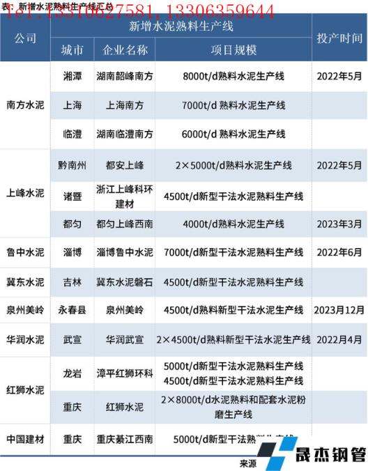 免責聲明:本網站(山東聊城晟杰無縫鋼管廠m.yztongfa.com)刊載的“:5月新增11條熟料水泥生產線,紅獅產能最大”等均源于網絡,版權歸原作者所有,且僅代表原作者觀點,本文所載信息僅供參考。轉載僅為學習與交流之目的,如無意中侵犯您的合法權益,請及時聯系刪除。本網站刊登此篇文章并不意味著本站贊同其觀點或證實其內容的真實性,我們不對其科學性、嚴肅性等作任何形式的保證。如果侵犯了您的版權,請盡快聯系我們予以撤銷,謝謝合作!