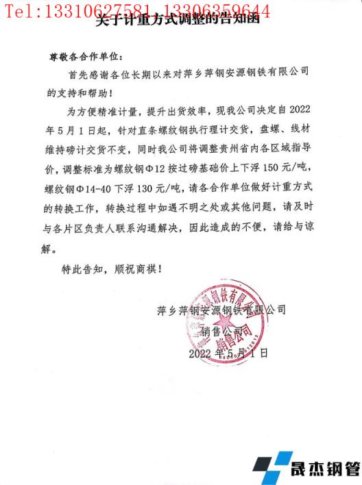 免責(zé)聲明:本網(wǎng)站(山東聊城晟杰無縫鋼管廠m.yztongfa.com)刊載的“萍鄉(xiāng)萍鋼安源鋼鐵有限公司關(guān)于對貴州區(qū)域計(jì)重方式調(diào)整的告知函”等均源于網(wǎng)絡(luò),版權(quán)歸原作者所有,且僅代表原作者觀點(diǎn),本文所載信息僅供參考。轉(zhuǎn)載僅為學(xué)習(xí)與交流之目的,如無意中侵犯您的合法權(quán)益,請及時(shí)聯(lián)系刪除。本網(wǎng)站刊登此篇文章并不意味著本站贊同其觀點(diǎn)或證實(shí)其內(nèi)容的真實(shí)性,我們不對其科學(xué)性、嚴(yán)肅性等作任何形式的保證。如果侵犯了您的版權(quán),請盡快聯(lián)系我們予以撤銷,謝謝合作!