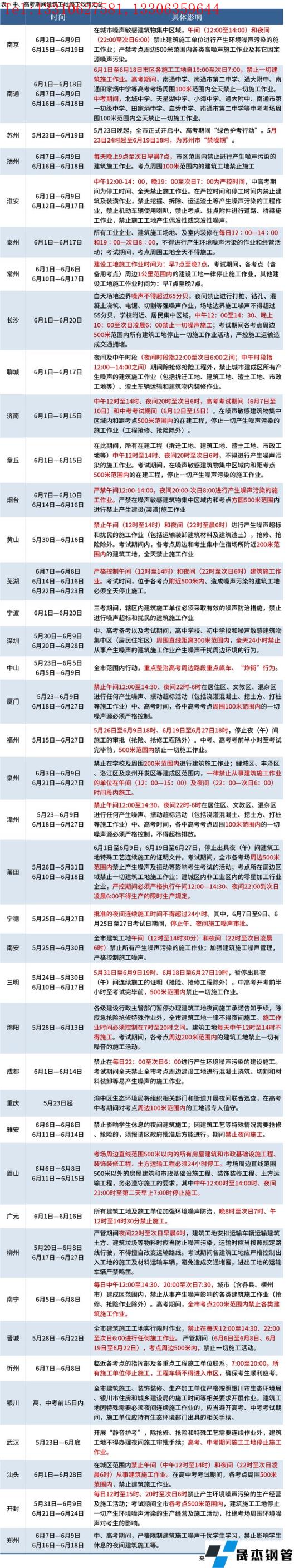 免責聲明:本網站(山東聊城晟杰無縫鋼管廠m.yztongfa.com)刊載的“中高考期間,40城建筑工地停工政策匯總”等均源于網絡,版權歸原作者所有,且僅代表原作者觀點,本文所載信息僅供參考。轉載僅為學習與交流之目的,如無意中侵犯您的合法權益,請及時聯系刪除。本網站刊登此篇文章并不意味著本站贊同其觀點或證實其內容的真實性,我們不對其科學性、嚴肅性等作任何形式的保證。如果侵犯了您的版權,請盡快聯系我們予以撤銷,謝謝合作!