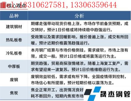 黑色期市偏強運行,貿易商報價上揚。從成交方面來看,由于期螺漲幅較多,市場剛需有所釋放,部分投機性需求增加。短期來看,近期全國多地一攬子穩經濟政策積極出臺,穩定市場情緒,在政策加持下,現貨價格有所反彈。加之,上海6月1日起全面恢復正常生產生活秩序,預示著需求將逐步回暖。隨著市場信心的逐步建立,短期鋼價呈現震蕩偏強運行。