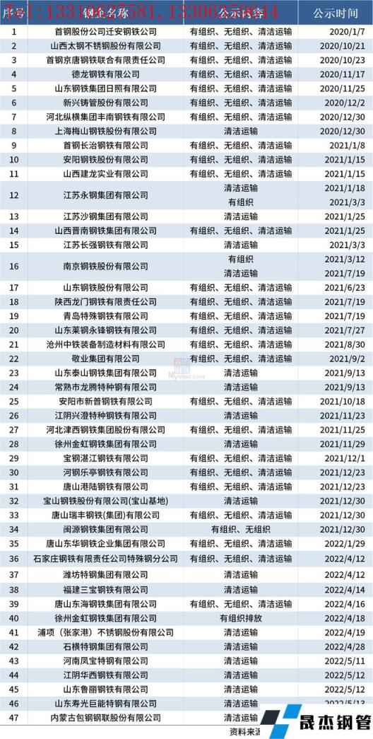 自2020年8月起,中國鋼鐵工業協會開展了鋼鐵企業超低排放改造和評估監測進展情況公示工作。截至2022年5月31日,已有47家鋼鐵企業在鋼協網站進行公示。5月以來新增5家企業,分別為河南鳳寶特鋼、江陰華西鋼鐵、山東魯麗鋼鐵、山東壽光巨能特鋼和內蒙古包鋼。