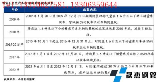 免責聲明:本網站(山東聊城晟杰無縫鋼管廠m.yztongfa.com)刊載的“汽車購置稅減半對大宗商品影響幾何”等均源于網絡,版權歸原作者所有,且僅代表原作者觀點,本文所載信息僅供參考。轉載僅為學習與交流之目的,如無意中侵犯您的合法權益,請及時聯系刪除。本網站刊登此篇文章并不意味著本站贊同其觀點或證實其內容的真實性,我們不對其科學性、嚴肅性等作任何形式的保證。如果侵犯了您的版權,請盡快聯系我們予以撤銷,謝謝合作!