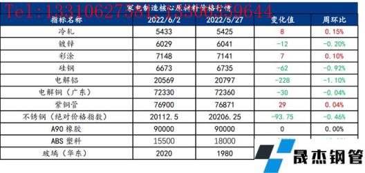 免責聲明:本網站(山東聊城晟杰無縫鋼管廠m.yztongfa.com)刊載的“家電原材料周報(5.30-6.2)”等均源于網絡,版權歸原作者所有,且僅代表原作者觀點,本文所載信息僅供參考。轉載僅為學習與交流之目的,如無意中侵犯您的合法權益,請及時聯系刪除。本網站刊登此篇文章并不意味著本站贊同其觀點或證實其內容的真實性,我們不對其科學性、嚴肅性等作任何形式的保證。如果侵犯了您的版權,請盡快聯系我們予以撤銷,謝謝合作!
