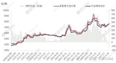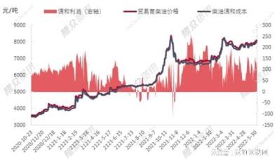 反觀柴油,依據華東江里貿易商 柴油價格及其原料價格走勢進行監測,2022年5月華東成品柴油原料價格同比出現1.5-2.5%的漲幅。在5月夏收帶動下,成品柴油價格同步上漲,致使柴油成本利潤均出現提升,但進入6月份,隨著南方進入梅雨季節,需求逐步回落,柴油理論利潤或相應收窄。見上圖3。