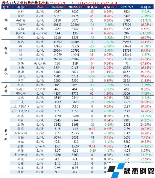 免責聲明:本網站(山東聊城晟杰無縫鋼管廠m.yztongfa.com)刊載的“周報:大宗工業原材料、能源及農產品價格周報(5.30-6.02)”等均源于網絡,版權歸原作者所有,且僅代表原作者觀點,本文所載信息僅供參考。轉載僅為學習與交流之目的,如無意中侵犯您的合法權益,請及時聯系刪除。本網站刊登此篇文章并不意味著本站贊同其觀點或證實其內容的真實性,我們不對其科學性、嚴肅性等作任何形式的保證。如果侵犯了您的版權,請盡快聯系我們予以撤銷,謝謝合作!