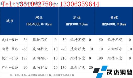 統一為理計單位后,武漢高于長沙36元/噸,南昌低于長沙68元/噸,杭州高于長沙139元/噸,廣州高于長沙90元/噸。