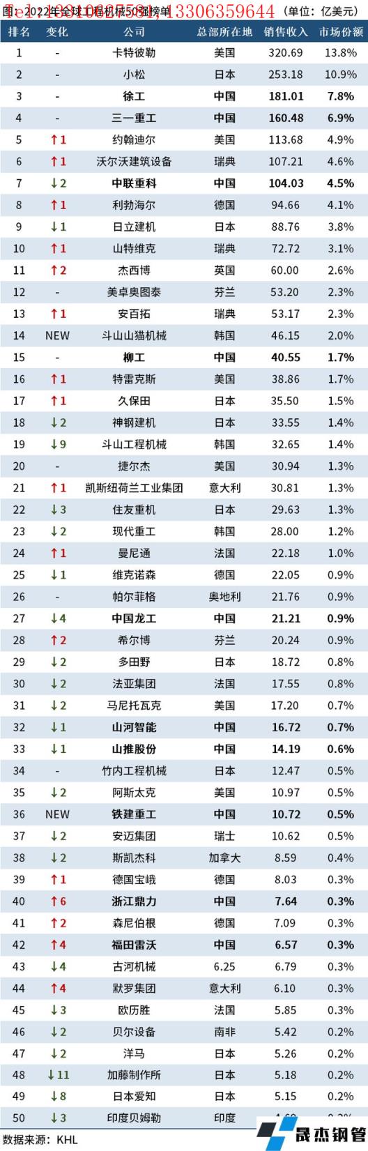 免責聲明:本網站(山東聊城晟杰無縫鋼管廠m.yztongfa.com)刊載的“2022全球工程機械50強榜單出爐,企業銷售額增超20%”等均源于網絡,版權歸原作者所有,且僅代表原作者觀點,本文所載信息僅供參考。轉載僅為學習與交流之目的,如無意中侵犯您的合法權益,請及時聯系刪除。本網站刊登此篇文章并不意味著本站贊同其觀點或證實其內容的真實性,我們不對其科學性、嚴肅性等作任何形式的保證。如果侵犯了您的版權,請盡快聯系我們予以撤銷,謝謝合作!