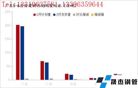 2、6月廣東地區建筑材區內(廣東和廣西)計劃供應量共計270.5萬噸,環比減少19.5萬噸,降幅6.7%;區外計劃供應量為50.5萬噸,環比增加1.4萬噸,增幅2.9%;