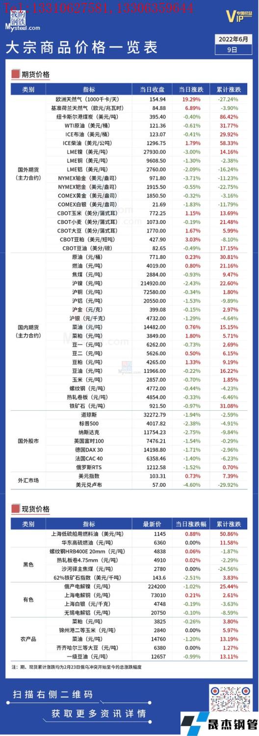 免責聲明:本網站(山東聊城晟杰無縫鋼管廠m.yztongfa.com)刊載的“俄烏局勢丨大宗商品價格一覽表(6月9日)”等均源于網絡,版權歸原作者所有,且僅代表原作者觀點,本文所載信息僅供參考。轉載僅為學習與交流之目的,如無意中侵犯您的合法權益,請及時聯系刪除。本網站刊登此篇文章并不意味著本站贊同其觀點或證實其內容的真實性,我們不對其科學性、嚴肅性等作任何形式的保證。如果侵犯了您的版權,請盡快聯系我們予以撤銷,謝謝合作!